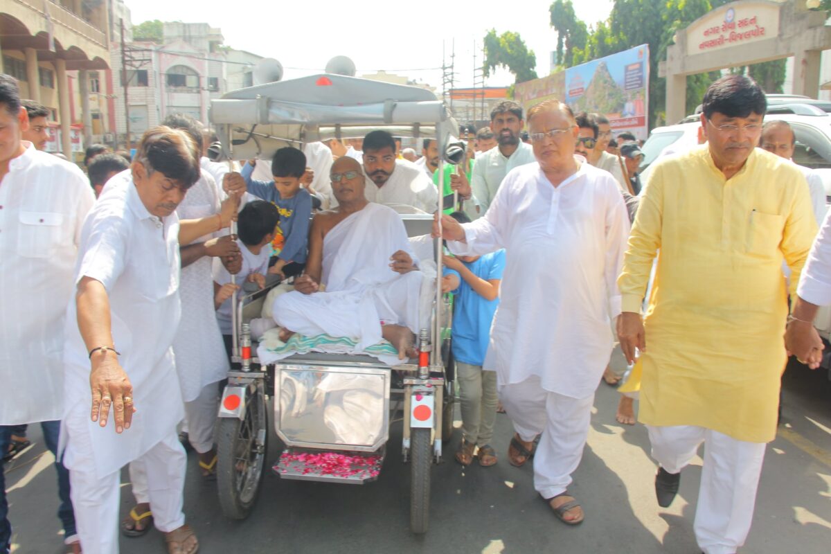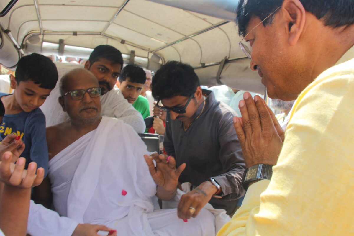 રથયાત્રામાં પૂ. મુનીશ્રીના આશીર્વાદ પ્રાપ્ત કરી તેમની નિશ્રામાં યાત્રામાં સહભાગી થયો….