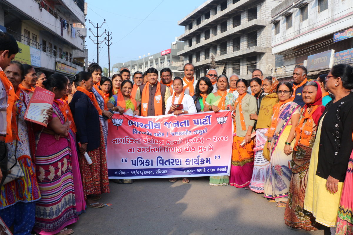 નાગરિકતા સંશોધન કાયદા – ૨૦૧૯ અંતર્ગત રાજકીય વિરોધ ઉભો કરવા લોકોને #CAA અંગે ખોટી અફવા ફેલાવવાના કૉંગ્રેસના કારસા સામે લોકો ને સાચી માહિતી આપવા આજે વિજલપોર શહેરમાં #CAA ની માહિતી પત્રિકાનું કાર્યકર્તા સાથે વેપાર સ્થાનો પર જઇ વિતરણ કર્યું.