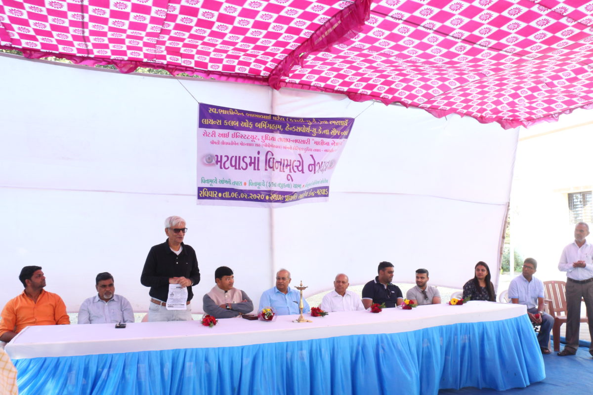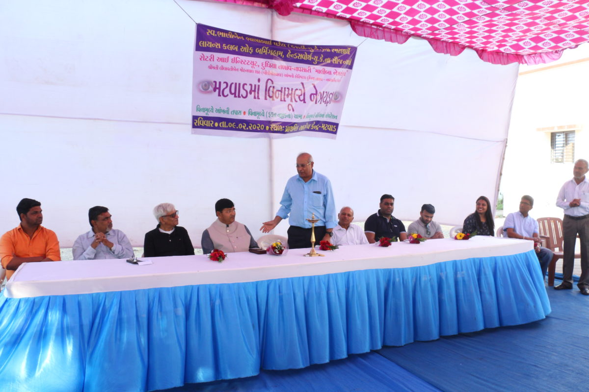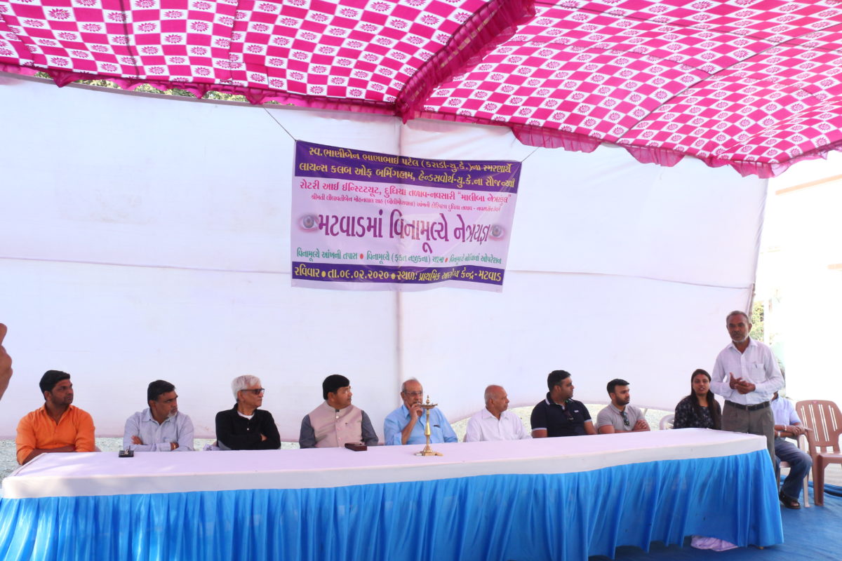 સ્વ. ભાણીબેન ભાણાભાઈ પટેલ (કરાડી-યુ.કે.) ના સ્મરણાર્થે લાયન્સ કલબ ઓફ બર્મિંગહામ, હેન્ડસવોર્થ – યુ. કે. ના સૌજન્યથી રોટરી આઈ ઈન્સ્ટિટ્યૂટ – નવસારી દ્વારા પ્રાથમિક આરોગ્ય કેન્દ્ર – મટવાડ ખાતે વિના મૂલ્યે નેત્રયજ્ઞનો શુભારંભ કરાવ્યો.