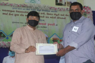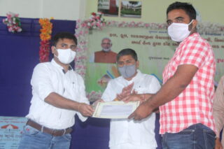 કેન્દ્ર સરકાર અને ગુજરાત સરકારના ‘આત્મનિર્ભર ભારત’ પેકેજ અંતર્ગત ‘સાત પગલાં ખેડૂત કલ્યાણ યોજના’ ના નવસારી – જલાલપોર અને ગણદેવી તાલુકાના ફળ / શાકભાજી વેચાણકારો, નાના / સીમાંત ખેડૂતો તેમજ ખેત મજૂરોને વિના મૂલ્યે છત્રી, સ્માર્ટ હેન્ડ ટૂલ તેમજ કંટાળી વાડ (ફેન્સિંગ) ના મંજૂરીપત્રો વિતરણ કરવાના કાર્યક્રમમાં ઉપસ્થિત રહી હુકમો લાભાર્થીઓને અર્પણ કર્યા.